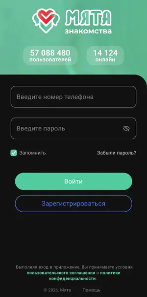 Популярное приложение со сдержанным дизайном, большим количеством активных участников и множеством фильтров, позволяющих искать людей не только по возрасту, но и по конкретным увлечениям, благодаря чему знакомства чаще позволяют выстраивать долгосрочные отношения. Пользователи хвалят «Мяту» за уют, естественность и простоту интерфейса, без необходимости поиска дополнительных вкладок. Одним из главных достоинств приложения является безопасность — модераторы тщательно следят за тем, чтобы в списке не появлялись подозрительные анкеты.