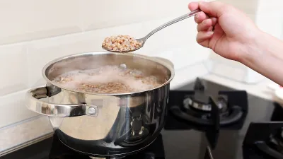 - Гречка: 1 стакан крупы + 1,5 стакана воды — варить 10–12 минут.