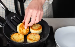 3. Неправильная температура сковороды. Если масло плохо разогрето, сырники начинают впитывать жир и распадаться. Если слишком горячо — они схватываются снаружи, оставаясь сырыми внутри.