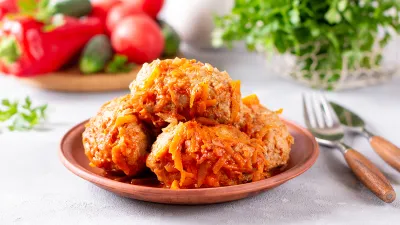 Ленивые голубцы — это блюдо, которое не просто так завоевало любовь хозяек: оно сбалансировано по составу и готовится невероятно просто, в отличие от классических голубцов. Все, что вам нужно, — это смешать необходимые ингредиенты, сформировать их в виде котлет и потушить. В итоге за 5 минут активного времени приготовления у вас получается невероятно вкусное и ароматное блюдо, которое с удовольствием съедят не только взрослые, но и дети.