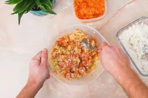 3. Соедините в глубокой миске фарш, полуготовый рис и капусту, добавьте соль и специи. Сформируйте получившуюся массу в виде котлет или тефтель удобного для вас размера.