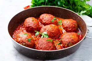 5. Выложите тефтельки в сковородку с соусом и готовьте под крышкой 30–40 минут.