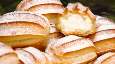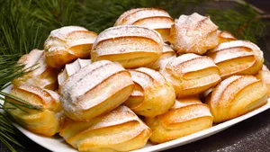 Это маленькие заварные пирожные с нежным творожно-сливочным кремом. Они похожи на мини-эклеры, но по традиции остаются светлыми, без глазури.
