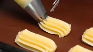 - Переложить тесто в кондитерский мешок с насадкой диаметром около 1,5 см.