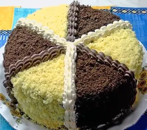 «Махровый» готовят из двух бисквитов — белого и шоколадного, а сверху покрывают обильной крошкой, из-за которой торт похож на мягкое махровое полотенце (отсюда и название). Он получается высоким, нарядным, с нежным кремом и идеально подходит для праздничного стола.