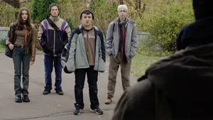 Серьезную конкуренцию кинозвезде составляет ансамбль молодых актеров, воплотивших компашку школьных друзей. В коем-то веке в российском сериале подростки реально выглядят и ведут себя, как подростки. Они глупо шутят, жуют котлеты с макарошками в столовке, обижаются друг на друга из-за ерунды и пытаются разобраться в сложных взаимоотношениях с родителями. В каждом из главных героев можно разглядеть того самого приятеля из далекой школьной жизни: девочку-пацанку из неблагополучной семьи, трусливого мажора, вспыльчивого приколиста и маменькиного сыночка в трикотажной жилетке. Это ощущение давнего знакомства, словно мы в 2008-м вместе бегали от бездомных по району, помогло проникнуться историями Даши, Юры, Олега и Птахи с первой серии. Актеры, сыгравшие старшеклассников, стали для меня настоящим открытием этого сезона.