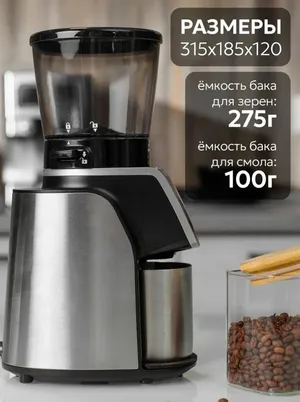 Стационарная жерновая модель весит 1,7 кг и питается от сети. Девайс, выпущенный под известным японским брендом, позиционируется как профессиональная кофемолка. В емкость для зерен можно засыпать сразу 275 граммов исходного продукта. Измельчение выполняют 40-мм конические жернова из углеродистой стали, предлагая 31 режим настройки помола. Двигатель мощностью 165 Вт работает с низкой скоростью до 450 оборотов в минуту, что снижает нагрев зерен и улучшает вкус кофе. На передней панели расположен сенсорный дисплей для управления устройством. Есть встроенный таймер с диапазоном от 1 до 40 секунд. В комплект входит сифон для продувки жерновов от остатков продукта: это необходимо делать перед изменением степени помола.