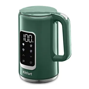 Эта модель выполнена из нержавеющей стали с пластиковым покрытием. Двойные стенки работают по принципу термоса и дольше сохраняют воду горячей. Чайник оснащен встроенным термодатчиком, что позволяет выбрать температуру нагрева от 40 до 90 градусов для разных целей. На корпусе расположен сенсорный дисплей с кнопками управления и отображением текущей температуры. Емкость прибора равна 1,7 литра, а мощность — от 1850 до 2200 Вт в зависимости от режима. Полный чайник закипает за 6 минут. Излишнюю длину шнура питания можно убрать в отсек на дне подставки.
