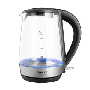 Чайник классической формы объемом 1,7 л изготовлен из жаропрочного стекла. У него широкая горловина для удобного залива воды и мерная шкала на корпусе. Дисковый нагревательный элемент обладает достаточной мощностью до 2200 Вт для быстрого кипячения. Контактная группа STRIX в центре подставки рассчитана на длительную безотказную работу. Есть внутренняя подсветка колбы, LED-индикатор работы и автоматическое отключение прибора при закипании или отсутствии воды. Длина шнура питания равна 0,7 м, а при необходимости его можно спрятать в специальный отсек для хранения. Весит устройство ровно 1 кг.