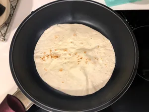 5. Сложите лепешку пополам, чтобы начинка оказалась внутри. Прижмите лопаткой.