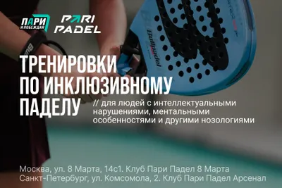 - Санкт-Петербург, клуб «Пари Падел Арсенал» (ул. Комсомола, д. 2). Среда, 14:00–15:00.