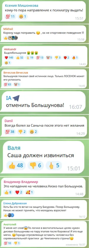 — Проигрывать тоже нужно уметь. Никто не в праве бить в спину другого спортсмена.