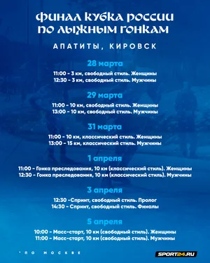 С просмотром можно запутаться, потому что не все гонки покажут по «Матч ТВ». Старты 28 и 29 марта будет транслировать ТВ Спорт. С 31 марта, когда лыжники переедут в Кировск, все будет на «Матче».