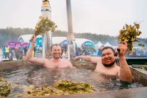 Нашлись и желающие, которые искупались в банном чане под открытым небом.