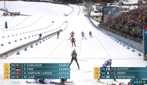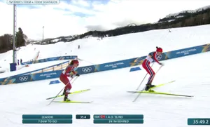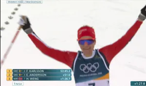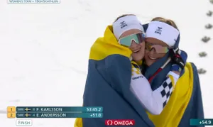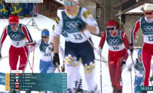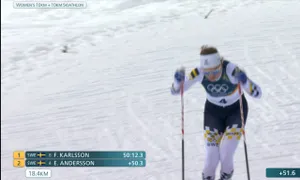 Смена лыж: Эбба, Фрида и Астрид выигрывают у Йонны почти сорок секунд. Непряева — двадцатая, проигрывает почти две минуты.