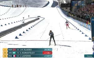 Мощно отработал Клебо финальный отрезок, пока первый. Делож финишировал чуть позже — норвежцу проиграл.