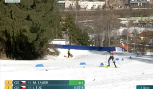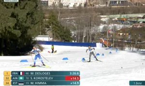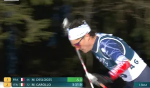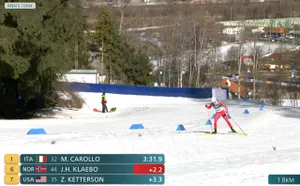На отметке 3,7 км Делож продолжает лидировать, но Йоханнес сократил отрыв до трех секунд.