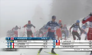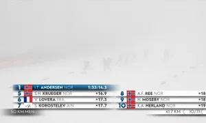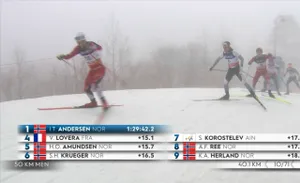 А у мужчин Андерсен сохраняет 15-секундный гандикап за 10 с небольшим км до финиша.