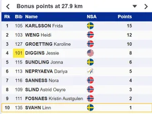 30,8 км — Фрида лидирует, Непряева 10-я (+19,1 сек).