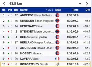 Live: Коростелев не выдержал темпа норвежцев, он 10-й. Непряева проиграла много — она 17-я
