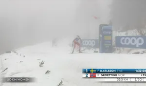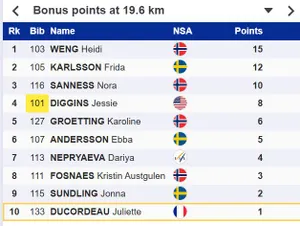Отвалилась норвежка от Фриды. Непряева эту отсечку прошла через 1:14.
