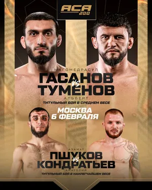Альберту Туменову 34 года, и его также причисляют к компании величайших чемпионов в истории ACB/ACA. Ему трижды в карьере доводилось выигрывать пояс лиги, однако все эти победы боец из Нальчика одерживал в рамках полусреднего веса. В феврале 2025-го Туменов впервые за 10 выступлений проиграл в ACA, сдав чемпионский титул Абубакару Вагаеву. В сентябре того же года Альберт вернулся в дело и закрыл поражение, одолев Винисиуса Круза нокаутом (удары по корпусу). А под конец года Туменов согласился подняться в весе ради чемпионского противостояния с Гасановым.