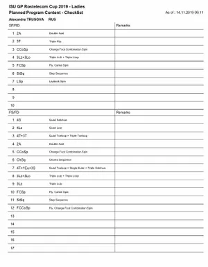 Российская фигуристка Александра Трусова заявила короткую и произвольную программу на Гран-при России.