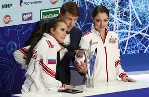 Женщины: Александра Трусова, Елизавета Туктамышева, Майя Хромых.