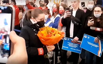 Валиева вернулась в Москву из Пекина. Видео встречи фигуристки в аэропорту
