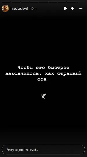 «Чтобы это быстрее закончилось, как страшный сон», — написала Медведева, добавив белого голубя.