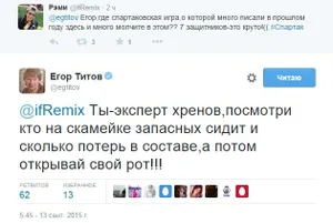 Если футболисты предпочитают высказывать свои пожелания болельщикам в оффлайне, то тренеры используют для этого социальные сети. В сентябре 2015 года «Спартак» дома обыграл «Ростов» со счетом 1:0. Но болельщики остались недовольны тем, что на последних минутах команда Дмитрия Аленичева играла против не самого серьезного соперника в семь защитников. На претензии в твиттере ответил тренер «Спартака» Егор Титов.