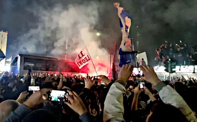 - Сразу после победы в Турине команда отправилась в аэропорт. Ночью в Неаполе ее встретили 20 тысяч тиффози. Просто посмотрите, как это было: