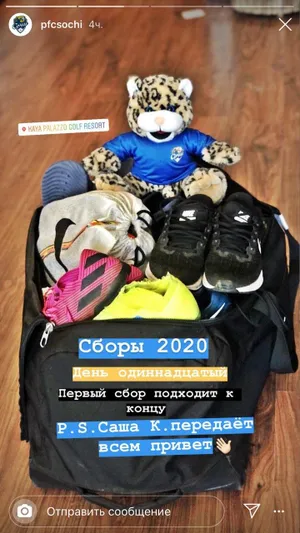 «Сборы-2020. День одиннадцатый. Первый сбор подходит к концу. P. S. Саша К. передает всем привет», — говорится в сообщении в инстаграме «Сочи».