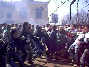 В итоге мы их обменяли друг на друга. Они устали, мы устали, мы разговариваем, начинается диалог. «Может, ничейку? — Какая [на фиг] ничейка». Слава рыжий впоследствии назвал сына Ярославом в честь Ярославля, теперь они братья. На эту драку он выбрил себе ирокез — причем не просто какой-то томагавк, а реальный панковский ирокез. Ему настолько [разбили] лицо — я был в шоке. У него была вышатана половина зубов, уши — как накладные в комедиях, синие, бордовые. Я думал — все, ампутация будет. И он такой стоит: «Ну че вы, девочки мои? Давайте: раз, два, три — ура!» И снова один на них несется, его опять выносят. В конечном счете парни из «East Side» — это ярославская основа, которая была страшная и опасная на тот момент — идут ва-банк, группируются и ударяют по наиболее пострадавшему флангу.