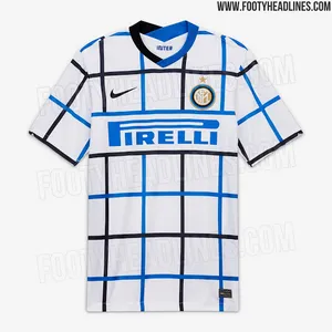 Футболки выездной формы нерадзурри в кампании-2019/20 будут белыми с геометрическим узором из полос синего и черного цвета. Воротник будет состоять из двух половин разного цвета — синего и черного. Дополнят образ белые шорты с синей и черной полосами с разных сторон.