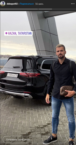 Нападающий Джордже Деспотович прибыл в Казань. Об этом футболист сообщил в сторис своего инстаграма, опубликовав фотографию из столицы Татарстана.