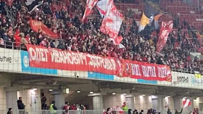 Болельщики «Спартака» перед игрой с «Краснодаром» вывесили баннер в поддержку Романцева