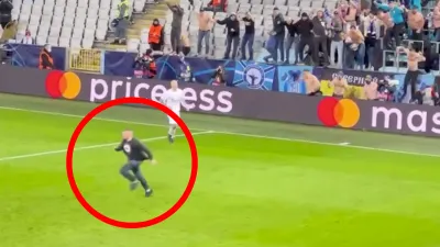 Болельщик «Зенита» прорвался на поле после гола защитника Ярослава Ракицкого с пенальти в гостевом матче 5-го тура группового этапа Лиги чемпионов против «Мальме». Игра в Швеции завершилась со счетом 1:1.