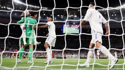 А «Реал» забил. Но после консультаций с VAR арбитр гол не засчитал — офсайд. Это был единственный момент сливочных в первом тайме. В остальном — ноль ударов по воротам.