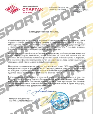 «Спартак» в день рождения МакSим отправил певице благодарственное письмо