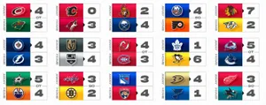 102 заброшенные шайбы за один игровой день — это второй результат в истории НХЛ. Больше было забито лишь однажды: 23 января 1993 года в НХЛ было сыграно 12 матчей, в которых команды забросили 103 шайбы.