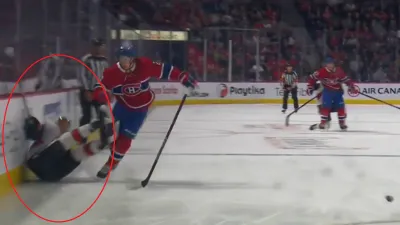 В середине первого периода нападающий «Сенаторз» Владислав Наместников получил травму: в борьбе за шайбу защитник «Канадиенс» Кейл Флери опрокинул россиянина, в результате чего Владислав влетел спиной в борт.