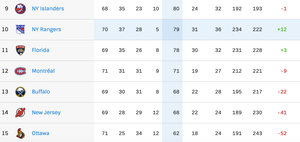 В таком случае регулярный чемпионат доигран не будет, а 24 клуба будут выбраны исходя из результатов прошедших матчей. В Западной конференции разрыв между 12-м «Чикаго» и 13-м «Анахаймом» — пять очков (по потерянным три). На Востоке все сложнее: «Монреаль» имеет 71 очко после 71-й игры, а «Баффало» и «Нью-Джерси» — 68 после 69. Можно еще выбирать команды по местам в дивизионах, но и там у некоторых точно возникнут вопросы.