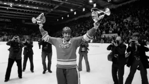Последний матч турнира между сборными СССР и Швеции не имел никакого значения — первые выходили на него в статусе чемпиона мира, вторые уже взяли серебро. Но одна интрига все-таки имелась — у советской команды на момент стартового вбрасывания было 94 заброшенных шайбы, болельщики хотели, чтобы хозяева добрались до красивой отметки в 100 голов. Как это нередко бывает, с достижением знакового рубежа возникли проблемы.