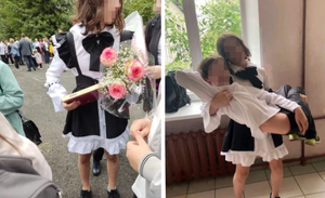 Нерадивый гимназист надел на праздничную церемонию женскую школьную форму. По словам одноклассников, парень таким образом решил просто подурачиться.