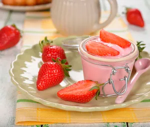 - Введите желатин тонкой струйкой в готовую клубничную массу. Перемешайте и разлейте по креманкам. Уберите в холодильник минимум на час.