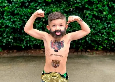 Фотография фаната Конора в его образе появилась на фан-странице Макгрегора. Мальчик сделал себе все татуировки любимого спортсмена, приклеил к лицу бороду и надел на себя чемпионский пояс UFC, сфотографировавшись с ирландским флагом в руках.
