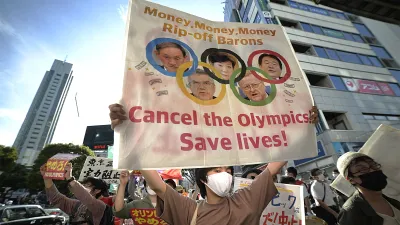 Жители Токио устроили акцию протеста против проведения Олимпиады в Японии.