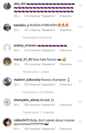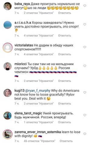 ola.vinokurova: Умейте проигрывать. Сегодня Рылов лучший. Россия — вперед. Ваши отвратительные высказывания не делают вам чести.