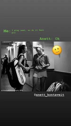 В своем инстаграме Касаткина выложила сторис, где она общается с Контавейт перед матчем.